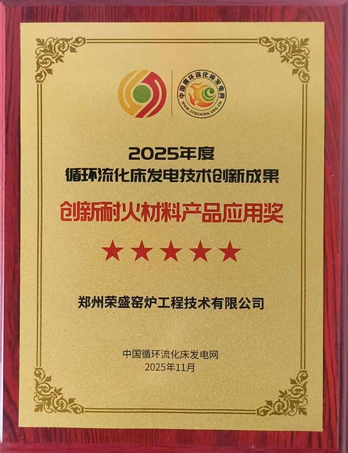 热烈祝贺郑州荣盛窑炉工程技术有限公司荣获2025年度循环流化床发电技术“创新耐火材料产品应用奖”!